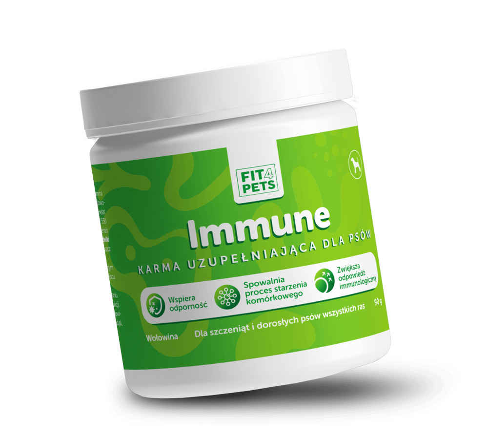 Produkt w formie smakołyku wspierający odporność psów. Pomaga wzmacniać układ immunologiczny dzięki obecności Bacillus velezensis DSM 1554 i Lactobacillus Helveticus HA-122. Przeznaczony dla psów w trakcie leczenia i po przebytych chorobach wirusowych. W okresie okołooperacyjnym i podczas rekonwalescencji. Polecany dla suk w ciąży oraz w trakcie